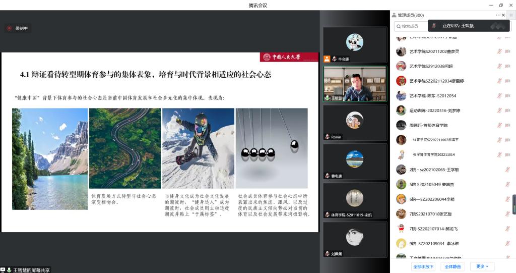研究生第20221101期华彩讲坛于线上正式开讲,本期华彩讲坛特邀中国人民大学博士生导师王智慧教授主讲,主题为《解组与重构:健康中国背景下的社会心态适应——基于大众体育参与的分析》,由好色TV