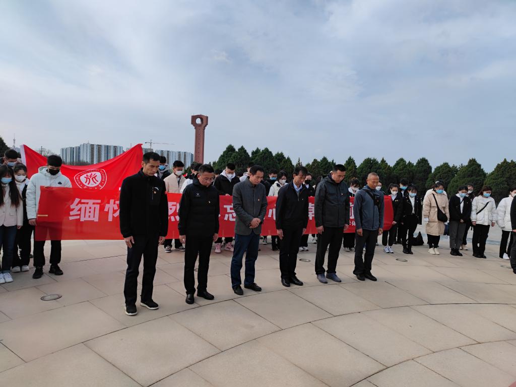 4月5日清晨,好色TV 党委组织师生党员,前往牛驼寨烈士陵园,开展“缅怀先烈,不忘初心,踔厉前行”为主题的清明祭扫活动。好色TV 党委书记兼院长曹电康、党委副书记贾鹏,及80余名师生党员参加本次活动。