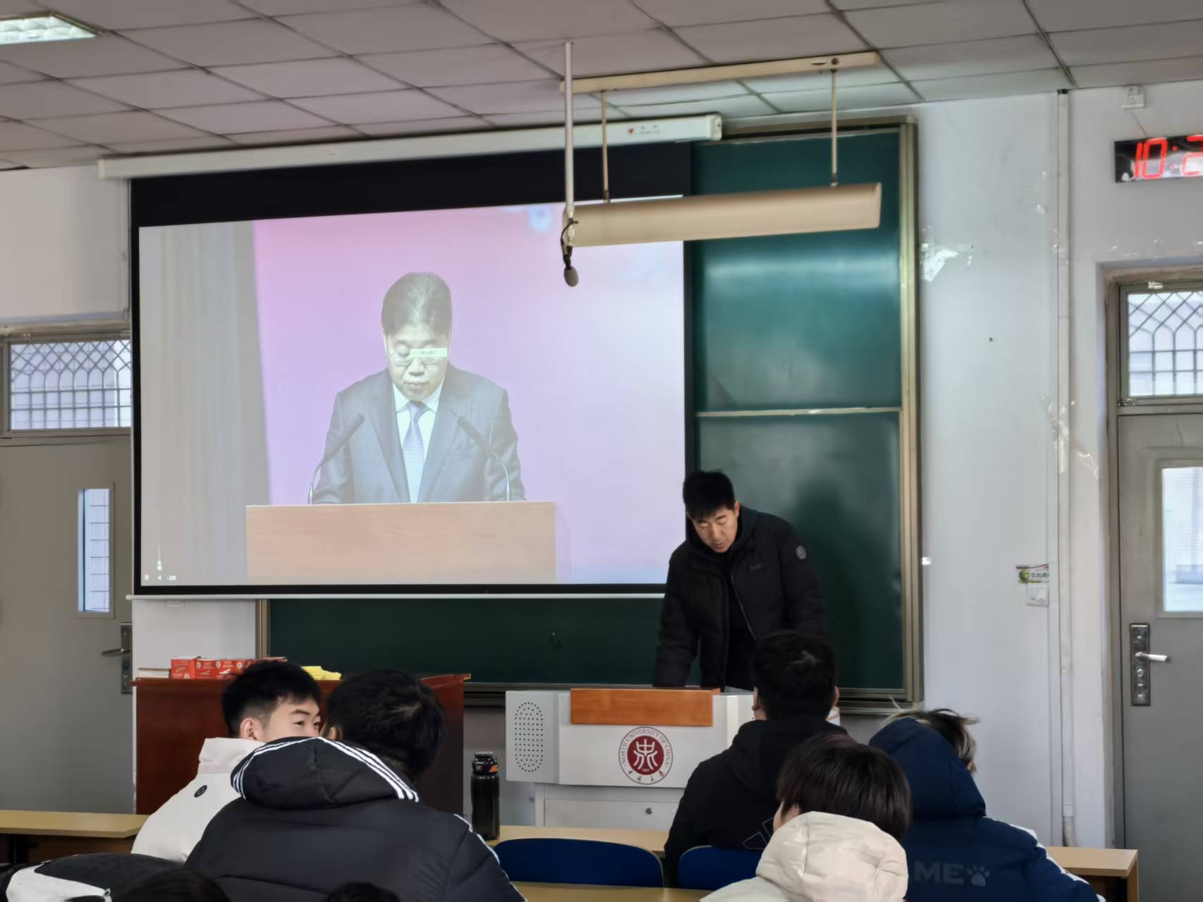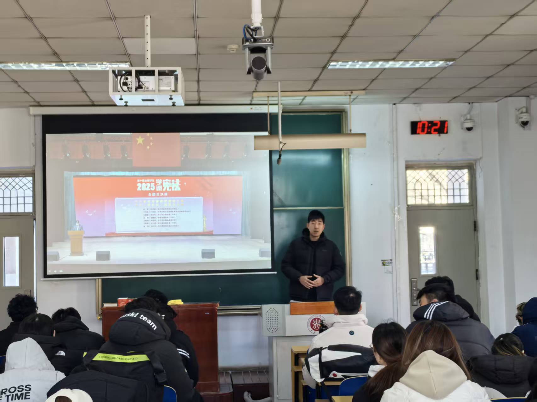 此次“宪法晨读”活动于10:00至11:20举行,教育部在北京设立主会场。活动伊始,庄严的升旗仪式拉开序幕,学院学生肃立致敬,深切感受宪法尊严与国家荣光。活动中,现场还同步观看了第十届全国学生“学宪法讲宪法”比赛全国总决赛获奖名单宣布、优秀作品展演环节,获奖选手的精彩表现为学生们树立了学习榜样。最后,教育部负责同志的讲话进一步明确了青年学生学习宪法、践行宪法的重要意义,引发在场学生强烈共鸣。