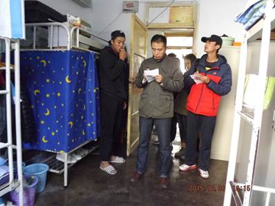 学生宿舍是在校大学生日常生活、学习交流的重要场所,是反映学生精神文明和校风校貌的重要窗口。为了丰富大学生寝室文化生活,推进学生宿舍精神文明建设,营造健康、和谐的生活氛围。2015年10月30日下午四点,展开了宿舍文化大赛,本次活动邀请了学院党委副书记贾鹏,院团委书记唐伟,学生会副主席刘晓芬,生活部部长孙俪环等人担任此次比赛的评委。