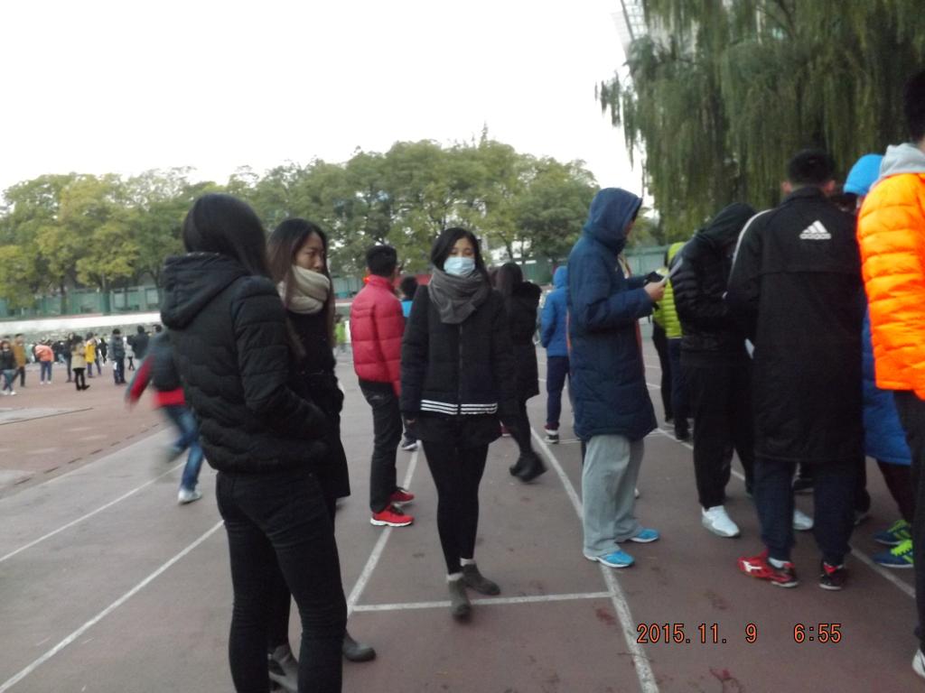 14级15级同学,早晨准时来到操场,他们在操场上整齐排列。王老师老师和学院全体学生干部同样来到队伍当中,鼓励同学们积极主动,认真对待,养成良好的生活习惯。