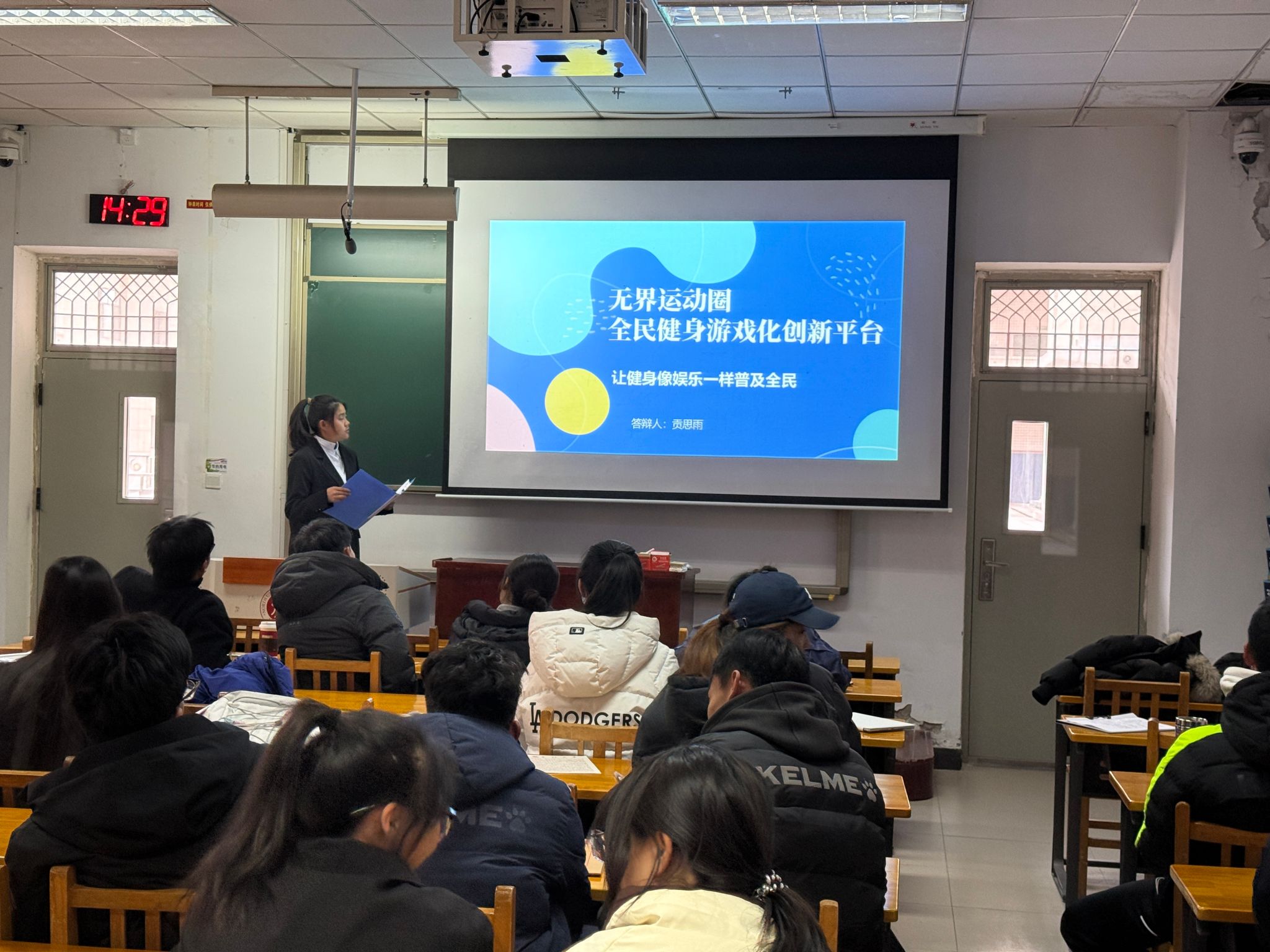 培育科创人才的重要载体。本次院级答辩严格遵循赛事规则,经过前期报名与初步筛选,来自体育教育、运动训练等专业的多个参赛项目脱颖而出。答辩现场,各团队以PPT演示、成果展示结合现场讲解的形式,从项目背景、核心创新点、市场应用前景及实施规划等维度展开阐述,呈现了一批兼具体育特色与实用价值的创新成果——既有聚焦智慧体育的系统设计,也有面向运动员素质水平的训练技术的创新研究,还有结合民俗体育文化的创业和哲学社会报告项目,充分展现了体育学子跨界融合的创新思维与务实进取的实践精神。