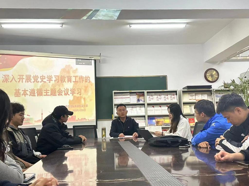 三层“党员之家”召开了关于“深入开展党史学习教育工作的基本遵循”的主题学习会议。本次会议由李士荣老师主持,全体本科生党员参加。