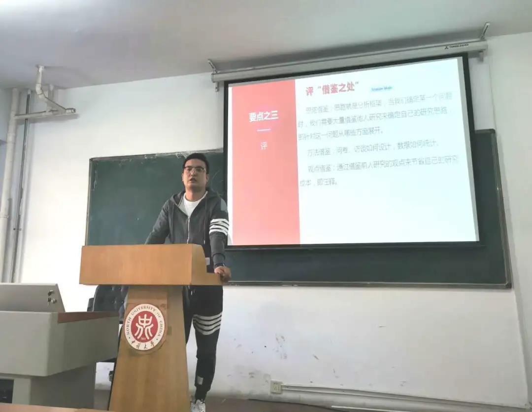 在谈及撰写文献综述结构时,李老师从前言、正文与结论分别举例进行梳理。根据同学们撰写文献综述可能出现的问题,李老师提出,文献综述的写作往往需要大量时间,但直接简单罗列与复制摘要的做法是不合格的,文献综述是对所读文献的概括和凝练的过程,必须紧紧围绕课题研究来写作。同时,李老师还分享了阅读文献的建议:选择文献时注意发表的年份和期刊质量;以批判地态度阅读文献;观察文献的研究方法和思路可否借鉴。最后,李老师强调文献综述不应是对已有文献的重复,而应包括综合提炼和分析评论双重含义。