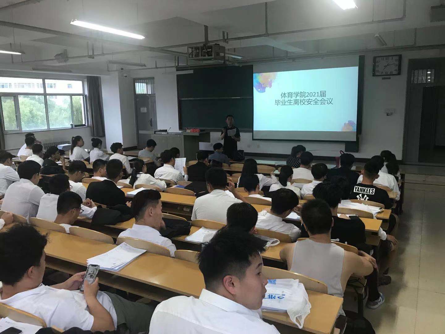 党委副书记贾鹏主讲,学生科长李士荣、团委书记王宇鹏以及全体2021届毕业生参加会议。