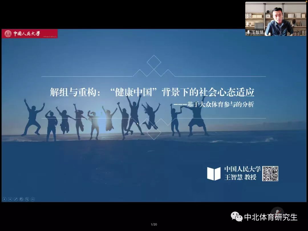 研究生第20221101期华彩讲坛于线上正式开讲,本期华彩讲坛特邀中国人民大学博士生导师王智慧教授主讲,主题为《解组与重构:健康中国背景下的社会心态适应——基于大众体育参与的分析》,由好色TV