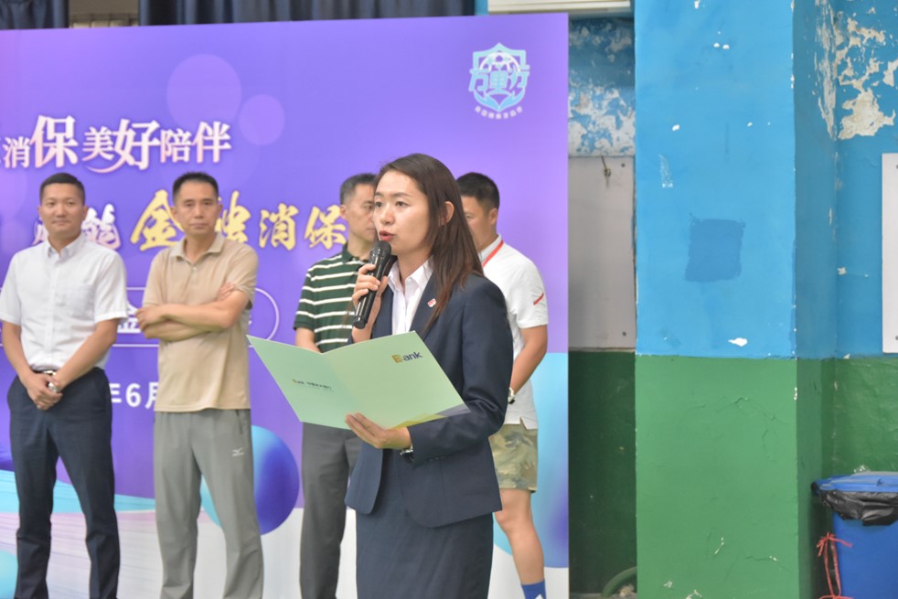 开幕式上,魏广红行长发表致辞,他希望中北学子能够发奋拼搏,为学校、社会作出更大的贡献,同时,也热烈欢迎各位学子加入光大银行的大家庭。运动员代表陈新轩和裁判员代表贾兰心分别进行宣誓。宣誓完毕后,杜丽斌经理向在场同学宣讲“金融消保”的知识和一些新型诈骗手段以及提防措施。最后,各参会嘉宾一起“开球”,预祝比赛圆满成功。