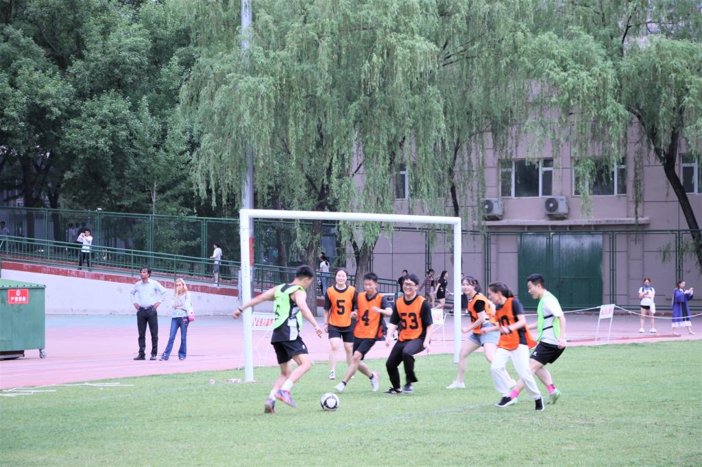 贾鹏书记为本次足球友谊赛致开幕词,他讲到学院永远是大家的后盾,学院的大门永远为你们敞开。随后副书记贾鹏为本场比赛开球,伴随着一声哨响,比赛正式开始。本次比赛由研一、研二学生对阵毕业生,伴随着比赛的进行,一个又一个精彩的进球将现场氛围不断推向高潮,现场的掌声也此起彼伏。比赛中场休息时,同学们与研究生导师进行了趣味游戏,增进了师生情谊。