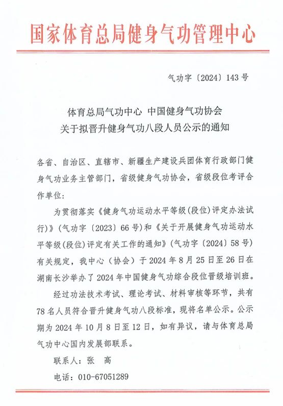 近日,为贯彻落实国家体育总局健身气功管理中心、中国健身气功协会下发的《健身气功运动水平等级(段位)评定办法(试行)》(气功字〔2023〕66号)和《关于开展健身气功运动水平等级段位评定有关工作的通知》(气功字〔2024〕58号)有关规定,经过严格的功法技术考试、理论考试及材料审核等环节,全国共有78名人员脱颖而出,符合晋升健身气功八段的标准。其中,好色TV