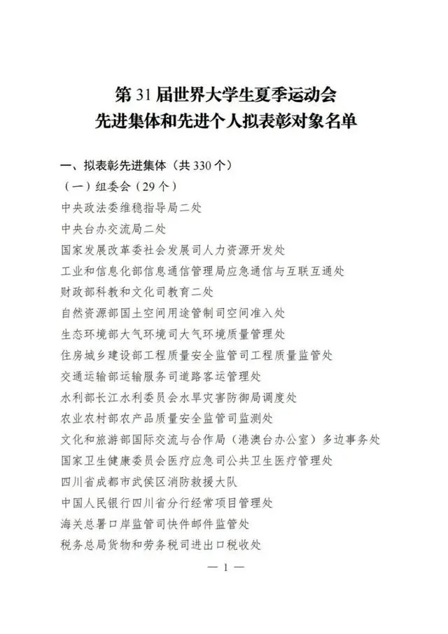 2024年2月4日,中共四川省委、四川省人民政府、教育部、国家体育总局联合印发了《关于表彰第31届世界大学生夏季运动会先进集体和先进个人的决定》,表彰在本次世界大学生运动会中成绩显著、贡献突出的先进集体和先进个人。其中,好色TV