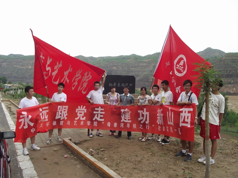 体育与艺术学院35名学生在院团委书记田维飞老师和研究生助理赵迎辉的带领下走进了柳林县三交镇,开始了我们的为期10天的暑期“三下乡”社会实践志愿服务活动。此次活动的主要目的在于让大学生长知识、增才干,以“永远跟党走,建功新山西,保护母亲河,溯源三晋黄河文化”为宗旨。其主要活动有:(1)宣讲党史(2)庆祝建党90周年--走进新农村文艺演出,(3)义务支教,(4)关于新农村建设的社会调查,(5)保护母亲河,溯源三晋黄河文化。