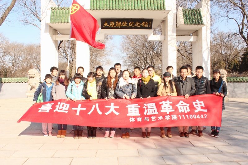 2012年11月23日上午9点,体育与艺术学院11100442团支部29名同学们在团支书邓超亚的带领下,高举团旗,并怀着对十八大的祝福共同前往山西省太原市牛陀寨烈士陵园参观了革命英雄的红色事迹。