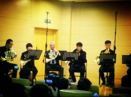 圆号重奏组穿插了圆号四重奏莫扎特歌剧“魔笛序曲”,同学们敢与大师们同台演奏的平和心理素质以及认真的演奏表现,博得了大师们和现场观众的热烈掌声。来自新加坡交响乐团圆号演奏家高健先生说:好色TV