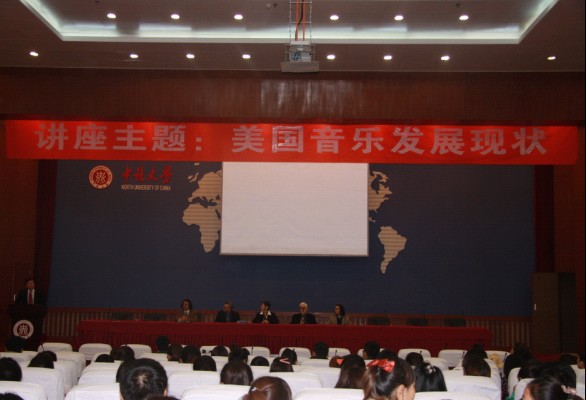 签署了合作协议,双方达成长期友好合作关系,为今后双方的专业学习交流建立了良好的平台。24日上午美国迪贝艺术家协会钢琴协会会长、施坦尼劳斯音乐学院院长助理兼音乐活动部主任丁东辉教授在图书馆五层学术报告厅作了题为《美国音乐发展现状》的主题报告。主讲人丁东辉(美籍华人)是“美国迪贝–施坦尼劳斯国际音乐艺术节”执行总监,德贝肯音乐艺术中心(国际联校)总裁。迪贝艺术家表演团团长。2011年受加州政府之邀,率团为美国前总统克林顿与高创会期间做特别表演。丁教授从音乐背景学、音乐治疗学、音乐管理学以及当今美国对新型人才、新型学者的要求做了精彩的讲解。下午丁教授与音乐系教师进行了座谈,针对目前美国钢琴发展的前沿动态,例如钢琴反弹指法的训练、钢琴音乐心理学以及神经系统在音乐当中的运用和作用进行了探讨。丁教授带来的国际音乐前沿动态使所有教师耳目一新。