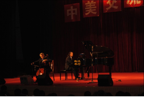 晚7点,“中美交流音乐会”在科艺苑隆重举行。戴波拉·卡娃西教授、本杰明·博仁、丹尼尔·戴维斯为大家做了精彩演出,博得了全体师生的热烈掌声。此次专家团来访不仅带来了先进的教学理念,各位专家精湛的演技更是令在座的所有来宾震撼。