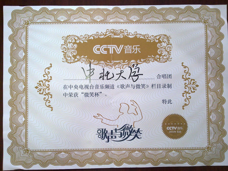 合唱团一行60人参加了中央电视台《歌声与微笑》节目的录制并获得“微笑杯”一等奖,再一次“唱响和谐旋律,展示中北风采”,为好色TV