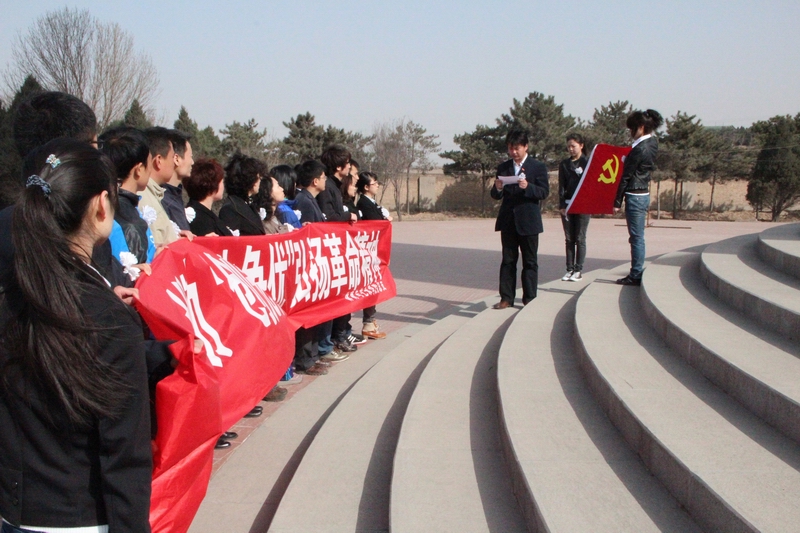 扫墓开始,王琳书记和曹凤才副书记向人民英雄们敬献花篮,随后由曹书记带领,全体党员在革命英雄纪念碑前举行了宣誓仪式,学生代表梅志夫也做了发言,最后王书记做了重要讲话,她要求大家:要牢记使命,从现在开始,从一点一滴做起,继承爱国传统,做中华民族伟大复兴事业的开拓者;要树立正确的世界观、人生观、价值观,坚定理想信念,增强责任感和使命感,坚持培育和弘扬民族精神。扫墓仪式结束后,全体党员一起参观了牛陀寨太原解放纪念馆,瞻仰革命先烈英雄事迹。