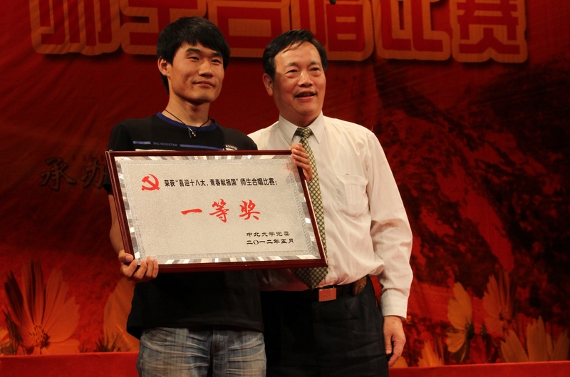 校歌《再铸辉煌》和自选曲目。旋律激昂的《保卫黄河》,嘹亮传情的《红旗飘飘》,各参赛队伍以高昂的歌声,深情的朗诵,曼妙的舞蹈征服了在场的所有观众,青春的呐喊在会场内回荡。最后,本次比赛的评委从精神风貌,演唱技巧,创新形式等方面对各参赛队伍打分,最终比赛成绩纷纷揭晓:一等奖:机电工程学院,二等奖:材料科学与工程学院,化工与环境学院;三等奖:电子与计算机科学学院,人文社会科学学院,信息商务学院;最佳组织奖:机械工程与自动化学院,体育与艺术学院;最佳指挥奖由材料科学与工程学院的指挥选手获得。比赛结束后,领导为获奖单位颁奖并合影留念。