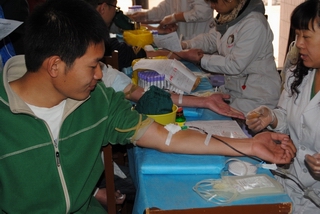 领导的大力支持,并把无偿献血活动作为一项经常性活动来抓。10100441团支部成员协助太原市红十字血液人员对献血者进行一系列的相关检测。全校师生也非常积极地报名参与,响应此次活动的倡议,并参与活动。截止到下午一点钟,血车上的血袋就已经满了,而此时来献血的同学仍陆续不断。活动期间,约100多名志愿者加入到此次活动中来,帮助血液中心医务人员处理各方面的事情,每个人都脸上都洋溢着笑容,因为自己做了真正有意义的事情。