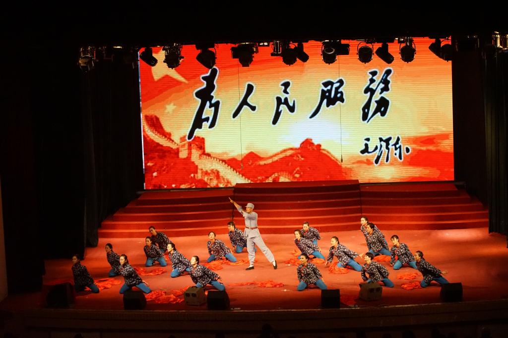 为迎接党代会精心准备的大型舞蹈《保卫黄河》,在经过将近一个月的精心创编和紧张排练,6月25日晚学校进行的专场文艺晚会上,体靓丽登场。